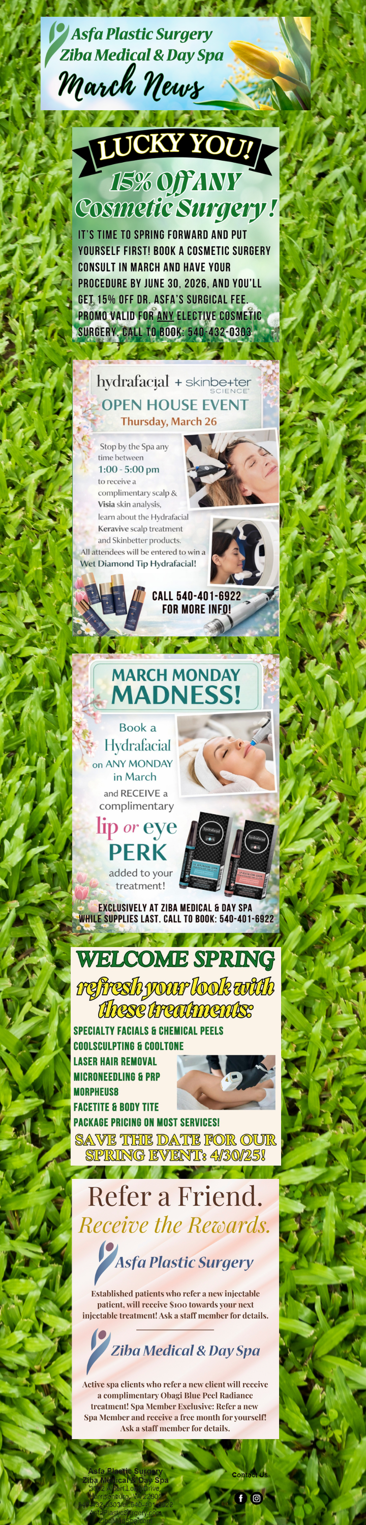 Sign up for our monthly eNewsletters so you won’t miss any of our fabulous specials or events!